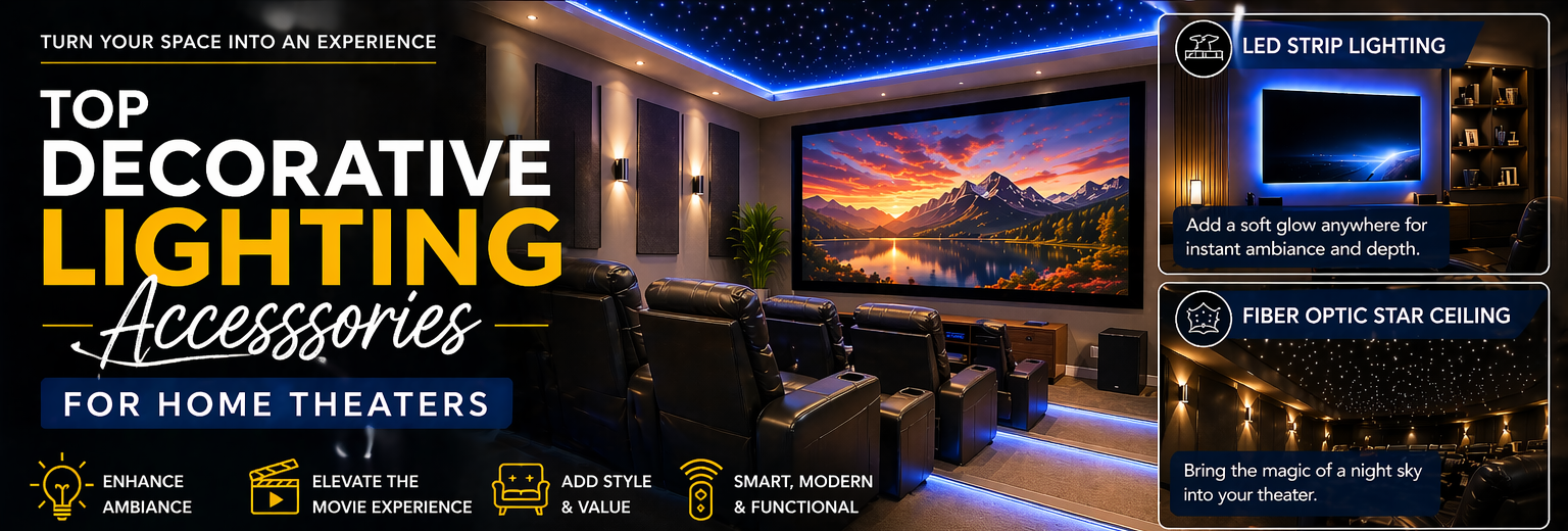 Stay tuned as we explore trending decorative lighting accessories that cut across different styles and tastes, ensuring your theater isn’t just a tech haven but a stylish, inviting space.